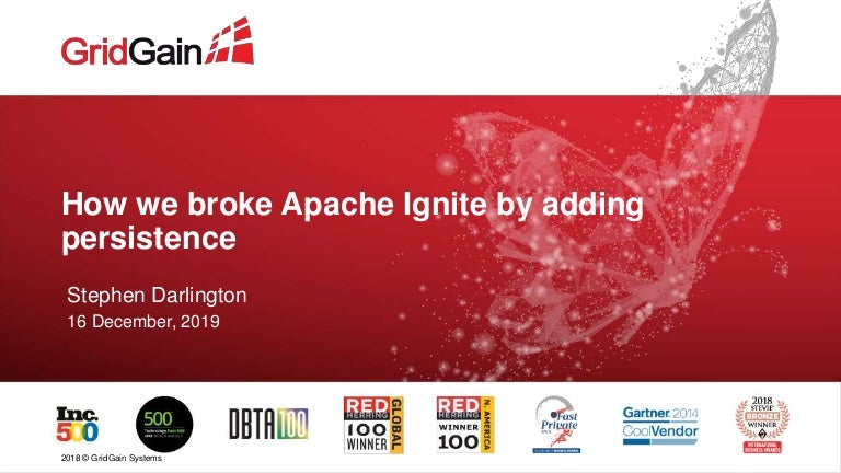 В 2014 году компания GridGain Systems передала в Apache Software Foundation разработанный ее сотрудниками код — платформу для вычислений в оперативной памяти. Так появился Apache Ignite Сотрудники компании GridGain продолжают участвовать в развитии проекта. Если у вас есть вопрос про Apache Ignite, на user list или на Stack Overflow вам весьма вероятно ответит контрибьютор, работающий в GridGain.