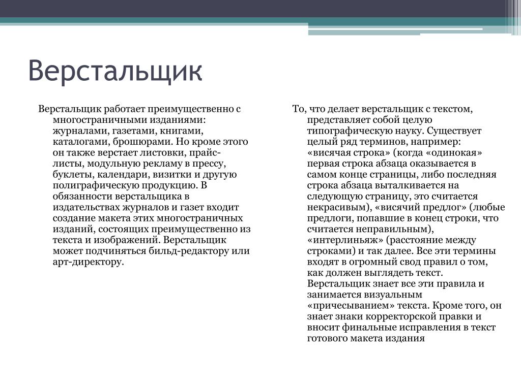 Многие из них ищут заказы на биржах фриланса, работая на себя. Такая работа приносит им достаточно денег для жизни. Начинающего верстальщика, как правило, не особо радует такая деятельность, ведь доход первое время совсем маленький. Однако со временем заказов становится больше и доступными оказываются дорогие. Поэтому начиная работу на себя, не нужно останавливаться, а следует двигаться к намеченной цели.