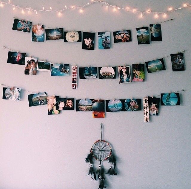 Ещё один оригинальный вариант — украшение для стены плюс фотовыставка.