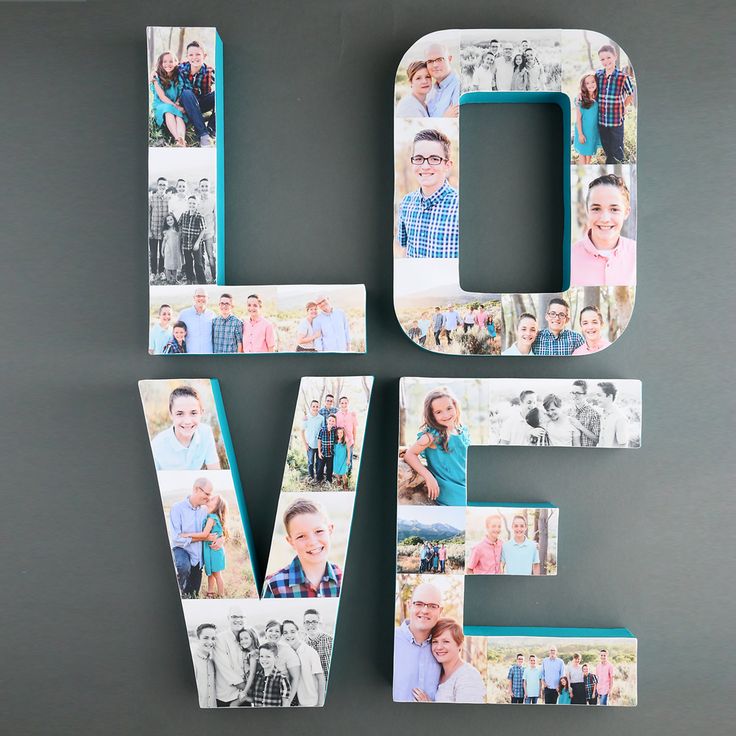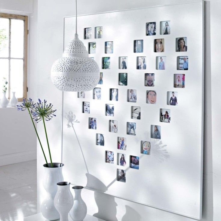 Из маленьких распечатанных фото можно выложить в раме, например, сердечко или другое изображение.