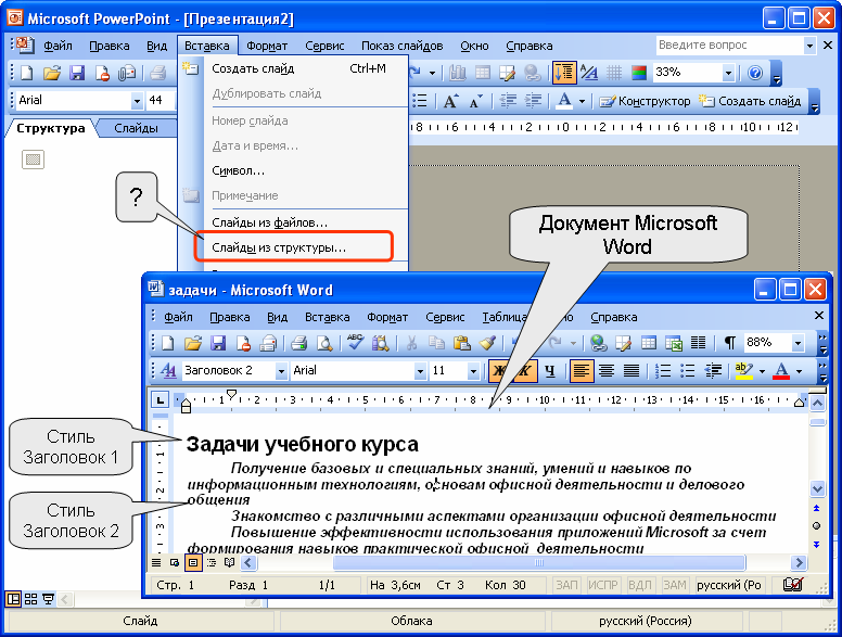 - Вставьте заголовок над основной темой.