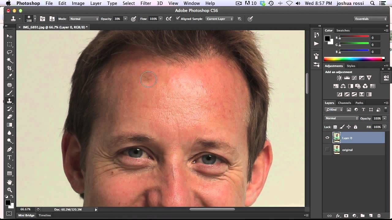 Opacity – значит непрозрачность. Проще говоря, чем меньше вы поставите процент в этой настройке, тем более прозрачная будет «работа» штампа. Например, при 100% штамп полностью заменит выбранный участок, а при 50% — будет полупрозрачным. Для ретуши лица, как правило, используется 10-30%, в ином случае будет слишком четко виден след штампа.