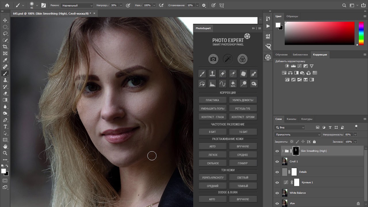 P.S. здесь и в следующих корректирующих инструментах используется недеструктивный метод воздействия, то есть мы не меняем изображение, а накладываем на него корректирующие слои, настройки которых можно изменить в любой момент, не влияя на исходную картинку.