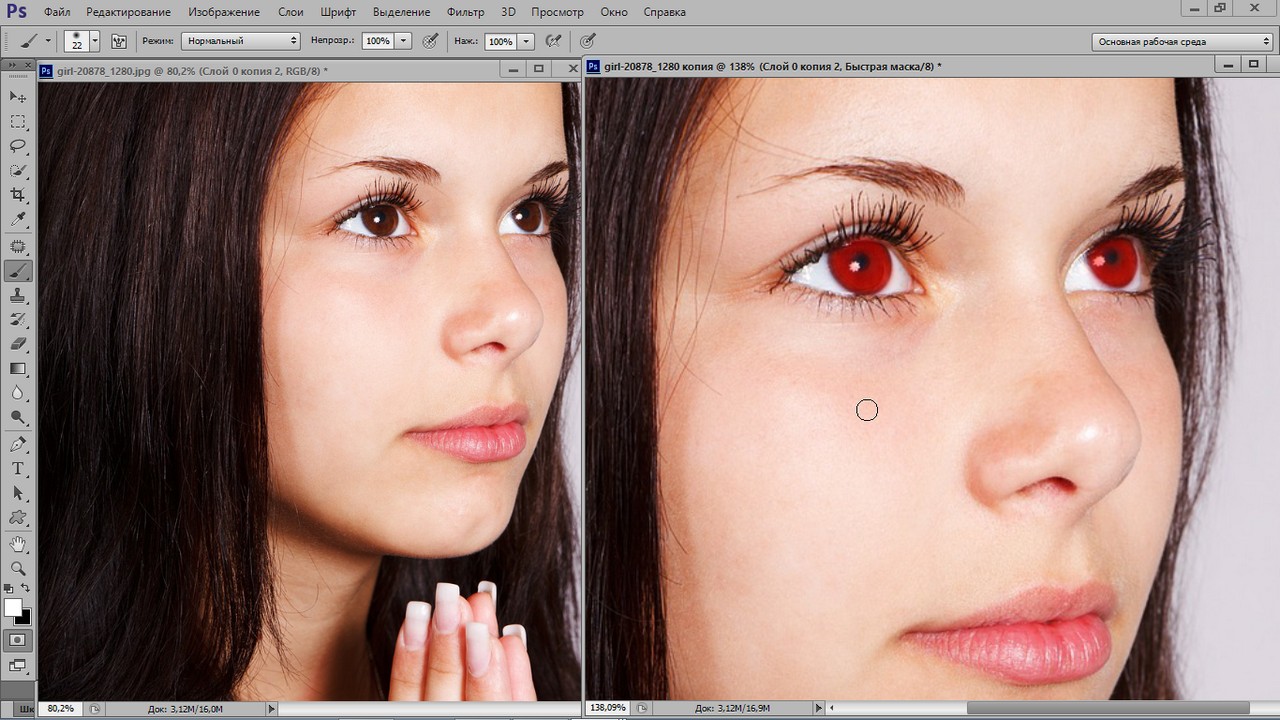 Его функция – брать определенный участок изображения и копировать его. Тем самым мы можем, например, заретушировать морщины – просто «заменив» их участками гладкой кожи. Для этого нажимаем Alt и выбираем область, откуда будет браться картинка, и потом, просто кликая по нужным участкам изображения, мы будем копировать ее на них.