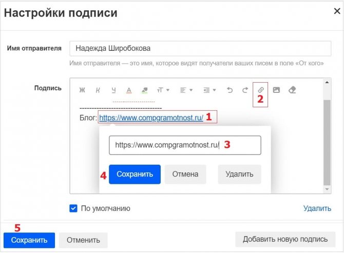 Аналогично, при добавлении ссылки на email адрес, вам нужно будет заменить часть с http на префикс mailto: перед email адресом, на который нужно ссылаться.