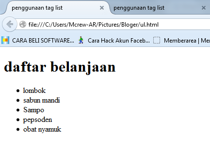 В этом примере показан неупорядоченный список товаров, которые нужно купить в магазине.