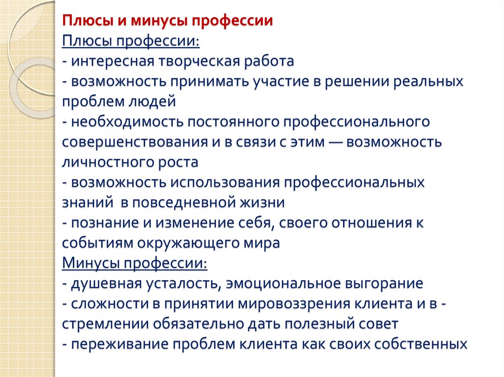 Против: есть большая вероятность, что работа не будет в вашей сфере.