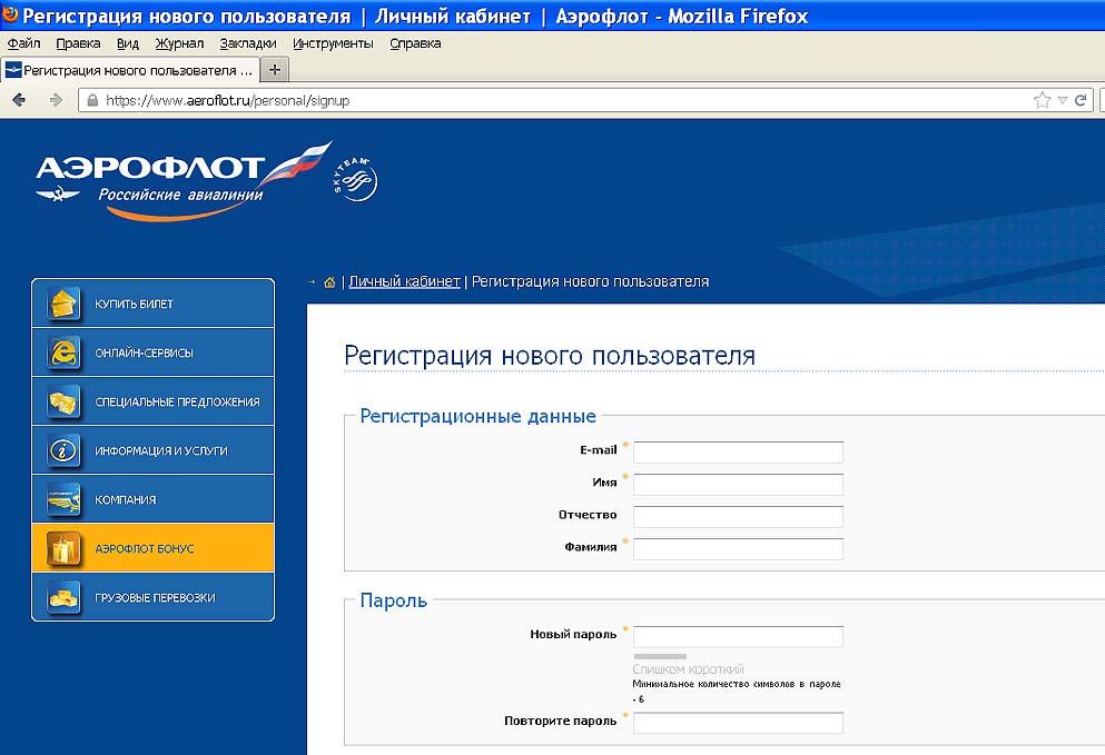 Регистрация нового пользователя