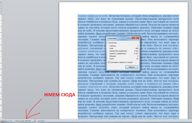 Вы таки получите число слов. Число слов, Карл!!! И знаков. То есть, не «на глазок» .
