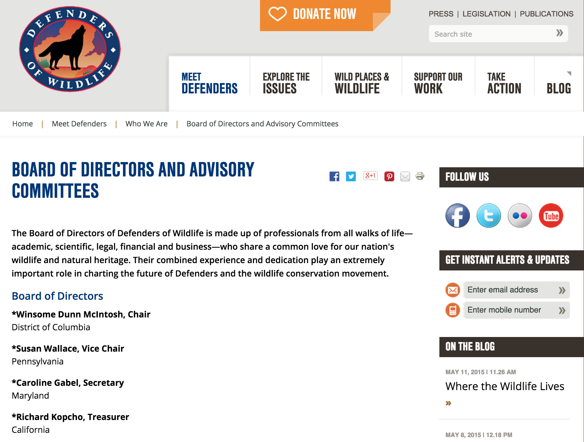 Defenders of Wildlife: без фотографий страница о руководстве компании выглядит недружелюбной. Снимки реальных людей могли бы дать лучшее представление о том, кто они — защитники дикой природы.
