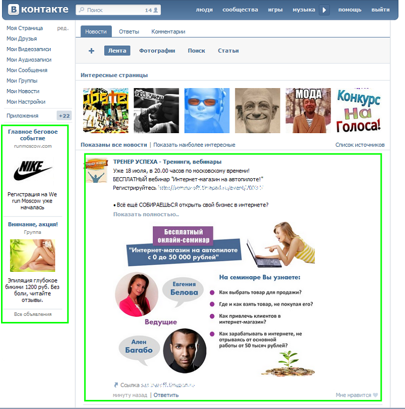 Такая реклама считается максимально нативной, ведь когда человек листает ленту – он готов воспринимать любые формы контента, в том числе и рекламный. Конечной целью рекламной кампании может быть показ, переход по ссылке, конверсия, а также просмотр страницы бренда в социальной сети. Таргетированная реклама может помочь: