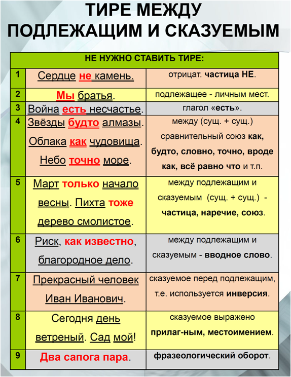 § 165. Тире ставится между подлежащим и сказуемым, если подлежащее выражено формой именительного падежа существительного, а сказуемое неопределенной формой или если оба они выражены неопределенной формой, например: