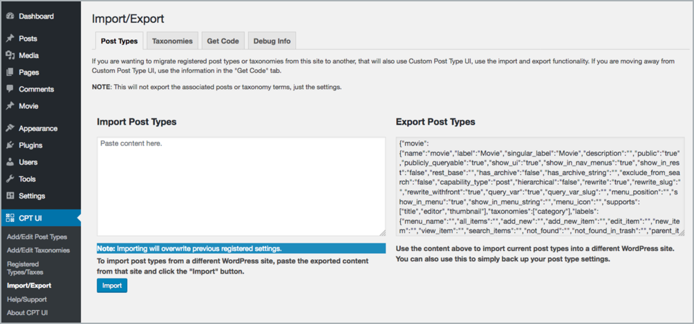 Вы можете легко перемещать свою работу между сайтами или делиться ею с другими с помощью функции импорта/экспорта. При импорте также будут скопированы изображения и другие соответствующие файлы, и это так же просто, как выбрать ZIP-файл на вашем компьютере.