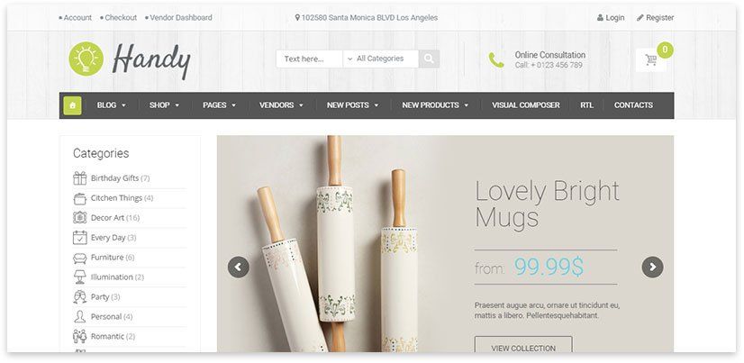 Вы можете создать уникальный веб-сайт с множеством элементов и блоков, предлагаемых темой. У него есть широкий выбор демонстраций электронной коммерции на выбор.